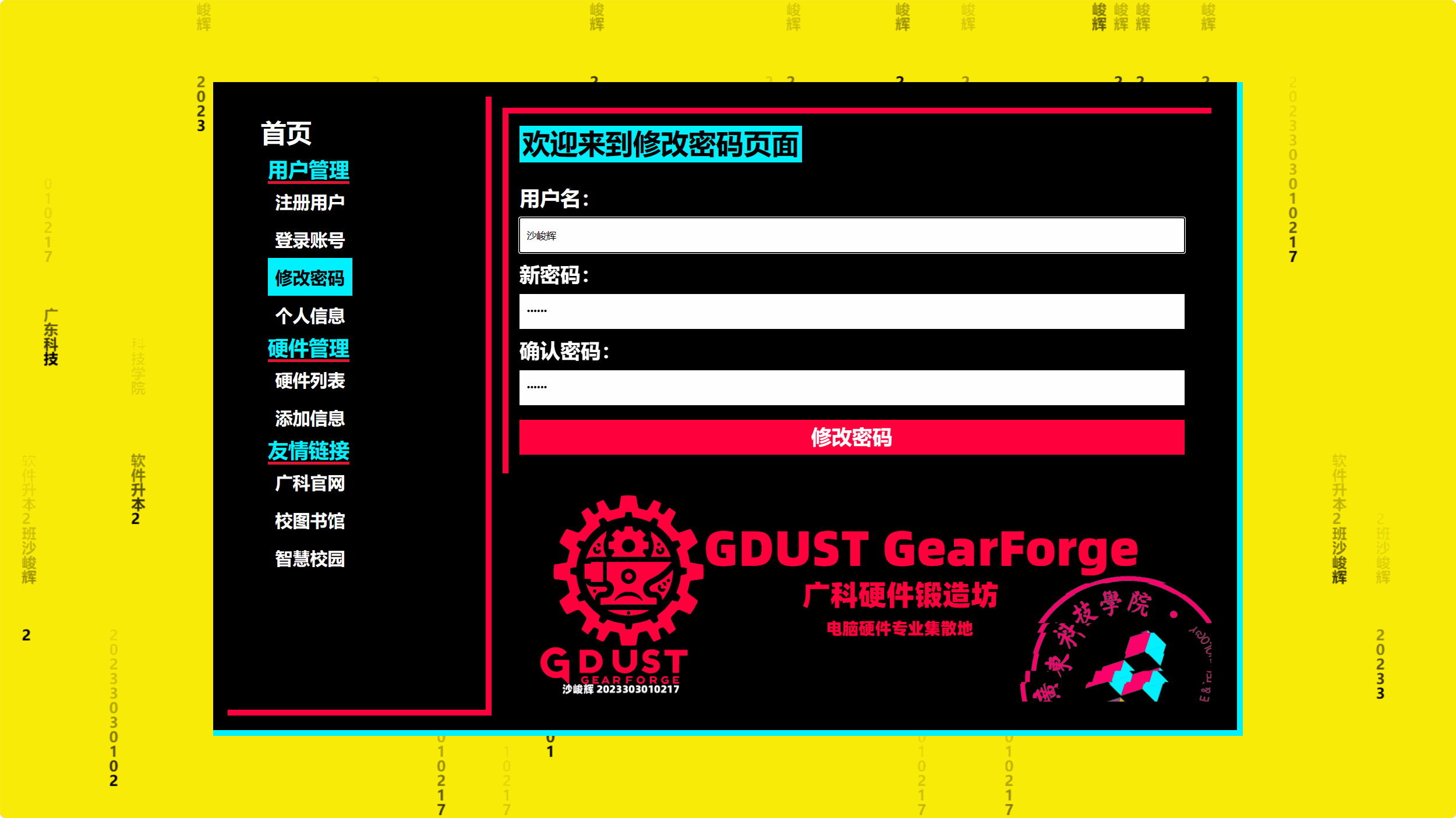 “硬件资产管理系统”是我在 “ASP.NET” 课程期末作业里独立完成的一套 Web 应用。我基于 ASP.NET Web Forms 把“资产台账”这种常见场景拆成更可操作的功能模块。用户体系这部分,我把注册、登录、个人资料展示以及密码修改这些环节串成一条完整流程。资产管理这部分,我把硬件信息的增删改查做成可直接落地使用的管理界面,让日常的登记、查询以及维护工作能够按流程顺畅跑通。