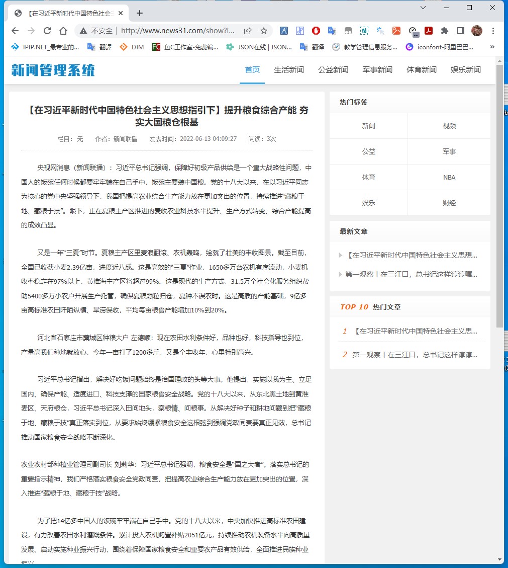 文章详情页会把标题、作者、阅读量等信息呈现出来,让阅读体验更接近真实新闻站点。