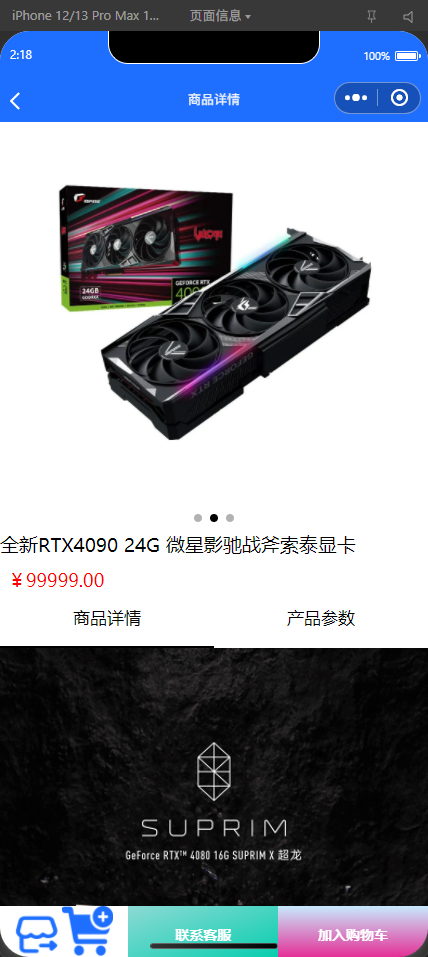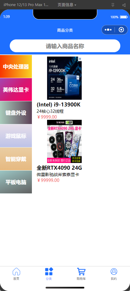 这是一个电子产品在线商城的微信小程序前端项目,我用小程序原生栈把“浏览商品 → 查看详情 → 加入购物车 → 结算支付”这条电商链路跑通,商品以处理器、显卡、键盘、鼠标等品类为主。