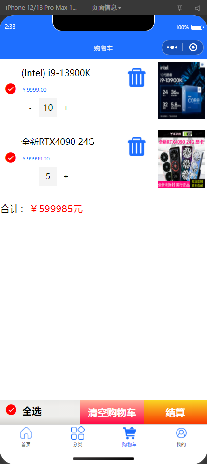 最后我对小程序各功能做了较全面的测试,包括页面跳转、商品浏览、购物车操作以及支付流程等关键链路,确保功能运行稳定,并尽量贴合移动端的操作习惯。